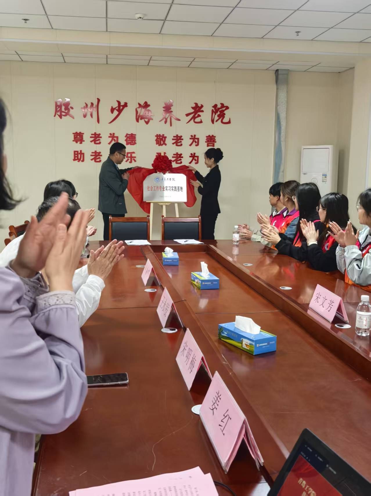 在共同见证下,双方正式签署共建实习实践基地协议。这份协议的签订,标志着双方合作迈入实质性阶段,为未来在养老服务实践、志愿服务活动、老年关怀研究等方面的深度合作奠定坚实基础。