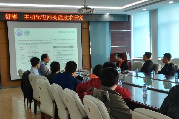 报告会上,舒彬高工以北京电力经济技术研究院参加的国家863计划课题“主动配电网关键技术研究及示范”为核心,详细介绍了该研究针对多类型分布式能源的大量接入、用户与配电网的双向互动及电力电子设备广泛应用给配电网带来的影响,建立配电网规划、管理、运行和控制方式的新理论和新方法。其中,舒彬高工重点讲授了主动配电网规划及规划运行互动决策、供电质量控制、多能源协同交互控制、基于多源信息融合的态势感知等关键技术,综合配电终端单元和快速切换装置,运行控制系统、规划决策系统和信息平台,以及北京亦庄和福建厦门主动配电网示范工程。报告会的互动环节,参会的老师和同学们与舒老师进行了深入交流。