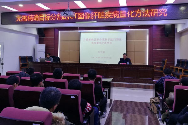 在此次学术报告会中,李教授对于肝脏疾病量化方法的研究为大家做出了详细的阐述。报告内容主要围绕医学图像分割的研究背景及意义;目标分割方法介绍;项目研究方法;实验结果以及未来展望几个主要方面开展。关于研究中提到的图形分割方法,首先建立肝脏模糊解剖模型,然后对肝脏器官进行自动识别,最后对量化方法性能进行评价。对于课题未来的研究方向,李教授认为可以从基于深度学习技术进一步加强对肝脏(或病灶)分割方法的研究,但目前也存在着数据样本不充足,或是数据样本充足但质量不过关等问题。李教授对同学们所提出的与课题相关的一些疑问,逐一耐心解答。在会上,李教授还和同学们一起分享了自己在国外的一些留学经历,这些对于同学们来说都是值得借鉴和学习的宝贵经验。