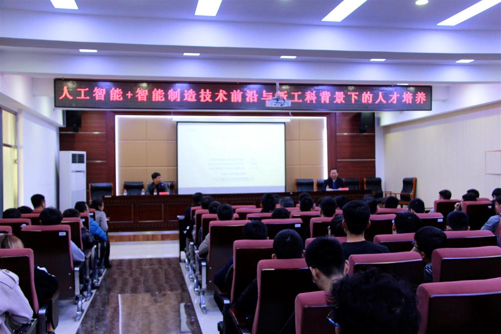 报告会中王振华教授围绕“人工智能+智能制造技术的发展前沿”、“人工智能与智能制造人才需求发展现状”、“智能制造系统的发展与人才培养”三个方面做了介绍。重点分享了现代企业生产中的“人工智能研究”、“AI+制造典型应用”、“智能制造专业所需要的能力要求”、“智能制造系统架构”、“智能制造内涵体现”、“智能制造PLM体现”等前沿技术的发展与落地实施情况。