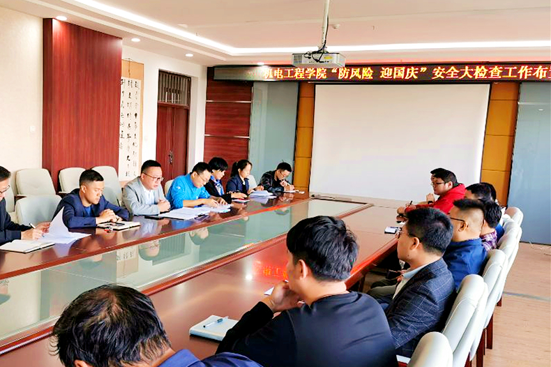 9月18日上午10:00,在成栋楼713会议室召开了新葡的京集团35222vip“防风险迎国庆”安全大检查工作布置会,学院党委书记王佳彤、副院长朱良宽、实验中心主任朱海、学院办公室主任和全体实验室负责教师参会。