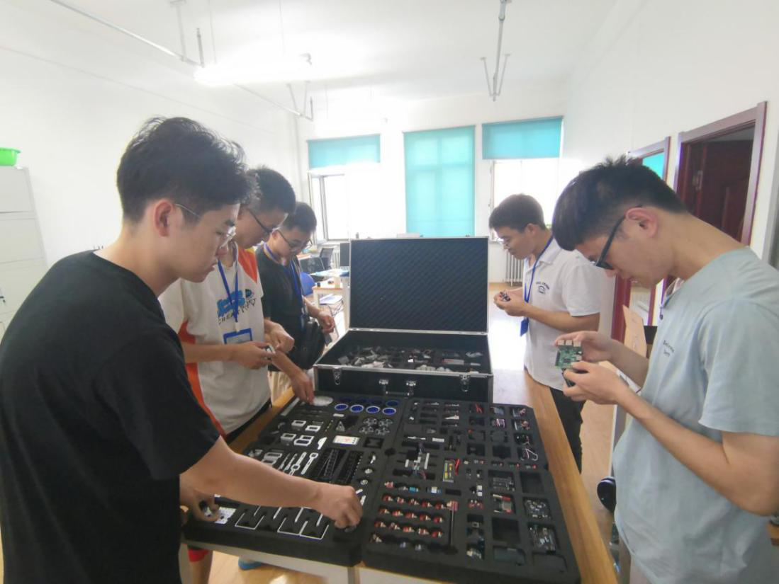 2019年7月15日至2019年7月16日,机械工程实验室在成栋楼620室-机器人技术实验室,开展了为期两天的“探索者机器人创新实验系统”使用操作培训。机械电子工程教研室、机械设计制造及其自动化教研室、机械工程实验室相关教师及学院相关专业本科生、研究生参加了本次培训。培训期间,教学副院长张佳薇和实验中心主任朱海老师到实验室了解了设备安装调试、培训内容、后续实验课程开展等情况。