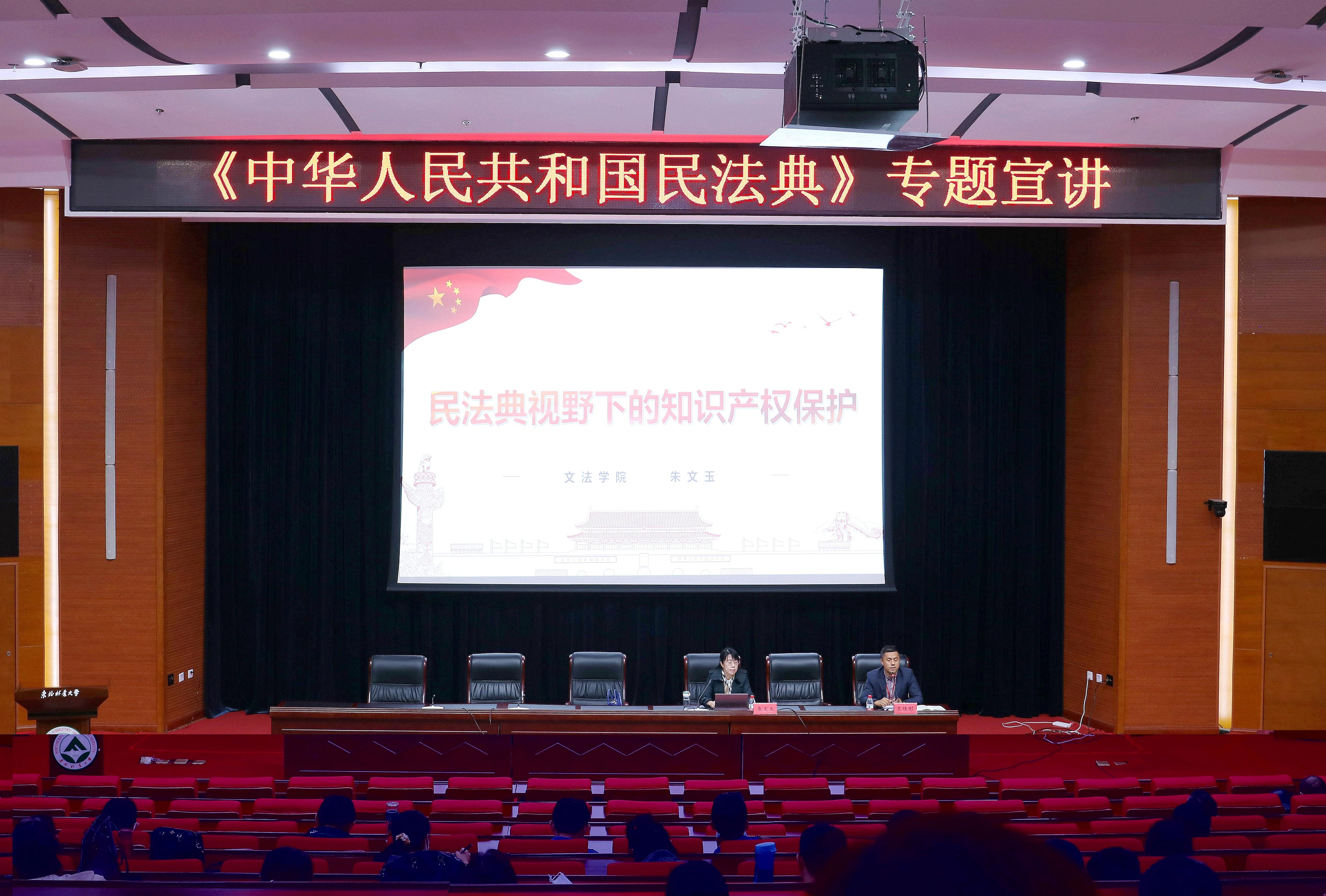 为了进一步贯彻落实习近平总书记“切实实施民法典”的重要论述,做好民法典普法工作,9月23日15:30,新葡的京集团35222vip、信息与计算机工程学院、奥林学院、国际交流学院、图书馆等五家单位,在成栋楼会议厅,联合举办了《中华人民共和国民法典》专题宣讲。学校民法典宣讲团成员、文法学院副院长朱文玉受邀为与会教师代表,作了题为《民法典视野下的知识产权保护》的辅导报告。宣讲活动由新葡的京集团35222vip党委书记王佳彤主持。