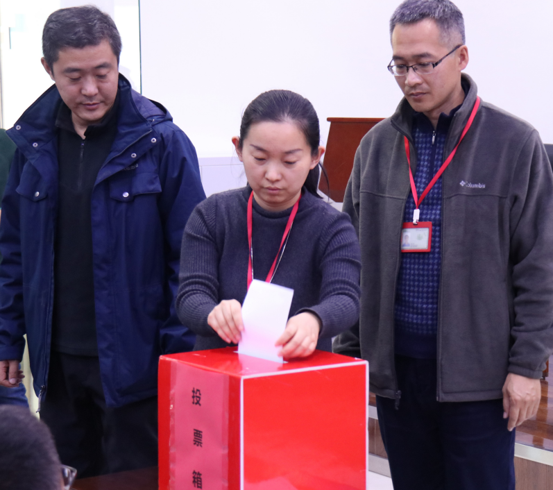 在大会计票小组成员清点人数、监票小组成员检验展示并加封了票箱后,现场发放了选票,王佳彤书记宣读了填写选票的注意事项。与会教职工以无记名投票方式郑重地填写了选票。投票后,计票人在监票人的监督下到指定地点计票。
