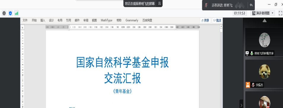 为进一步提高国家自然科学基金申报质量,浓厚学术氛围,繁荣基础研究,近日,新葡的京集团35222vip利用“腾讯会议”组织召开了2021年度国家自然科学基金申报院内评审会,邀请了北京工业大学人工智能与自动化学院院长张利国,以及我校林学院李伟教授、新葡的京集团35222vip郭艳玲教授等6名专家进行线上评审,把脉问诊,助力青年教师提升科研素质。学院2021年拟申报国家自然科学基金青年基金项目的8名教师参加会议,逐一阐述申报材料。会议由新葡的京集团35222vip副院长朱良宽主持。
