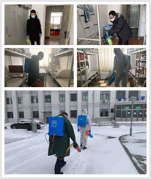 2月28日上午9时,在新葡的京集团35222vip党委书记王佳彤的带领下,学院团委书记付书朋,研究生辅导员刘文彬,本科生辅导员杨林光、张颂,研究生导师王琢、李兴东、班明飞等党员教师,在学校集合成队,携带着事先准备好的专业喷洒工具、消毒剂、防护服、口罩和丁腈手套等卫生防疫消杀设备,迎着漫天飘雪,开始工作。学院本科生、研究生寝室遍布南校区、主校区、原银行学校校区以及校外和兴路以北,大家克服雪大路滑、寝室比较分散等不利条件,按照分工,一丝不苟地进行入寝登记、开门、喷洒等作业,不留死角,确保消杀彻底。消杀过程中,对发现的墙皮脱落、漏水等临时突发现象和问题,第一时间报修,力求把问题解决到位。经过紧张忙碌的工作,共计12栋楼宇约386间寝室全部消杀完毕,静待返校学子。按照计划,学生返校后还要进一步开展爱国卫生运动大扫除,深化劳动教育,共创洁净校园。