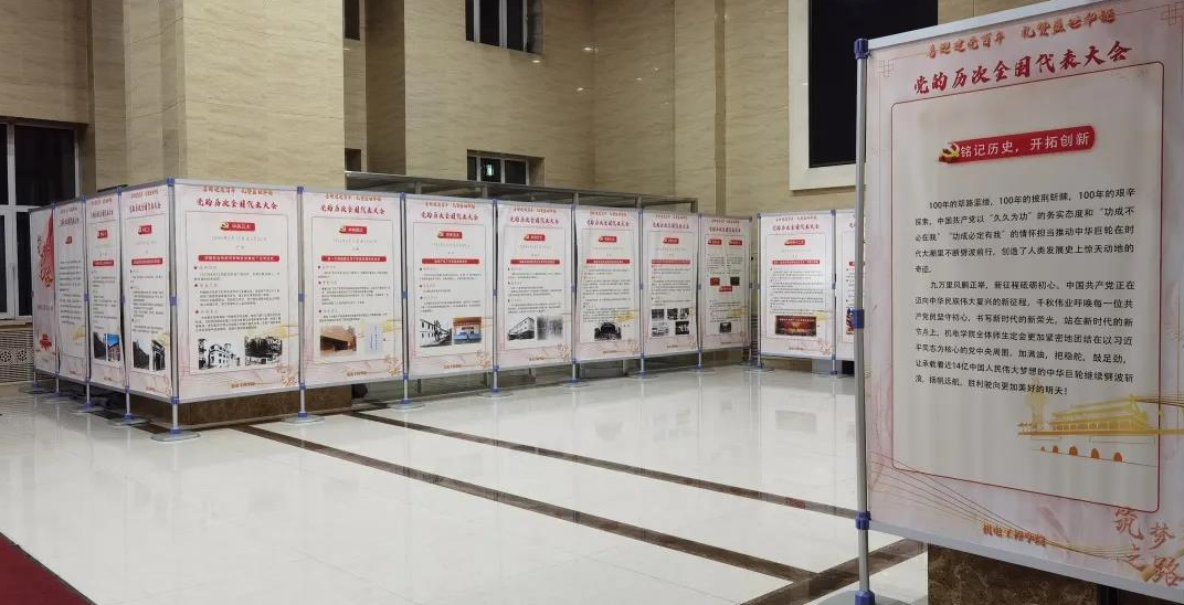 一叶红船,百年大党。在中国共产党百岁华诞来临之际,为号召广大师生不忘初心、牢记使命,获得成长成才的永续力量,日前,新葡的京集团35222vip在成栋楼方厅举办了“筑梦之路——党的历次全国代表大会”专题展览,学院官方微信“东林机电”同步展出,由此拉开学院“卓越创新、献礼百年”的庆祝建党100周年系列活动序幕。