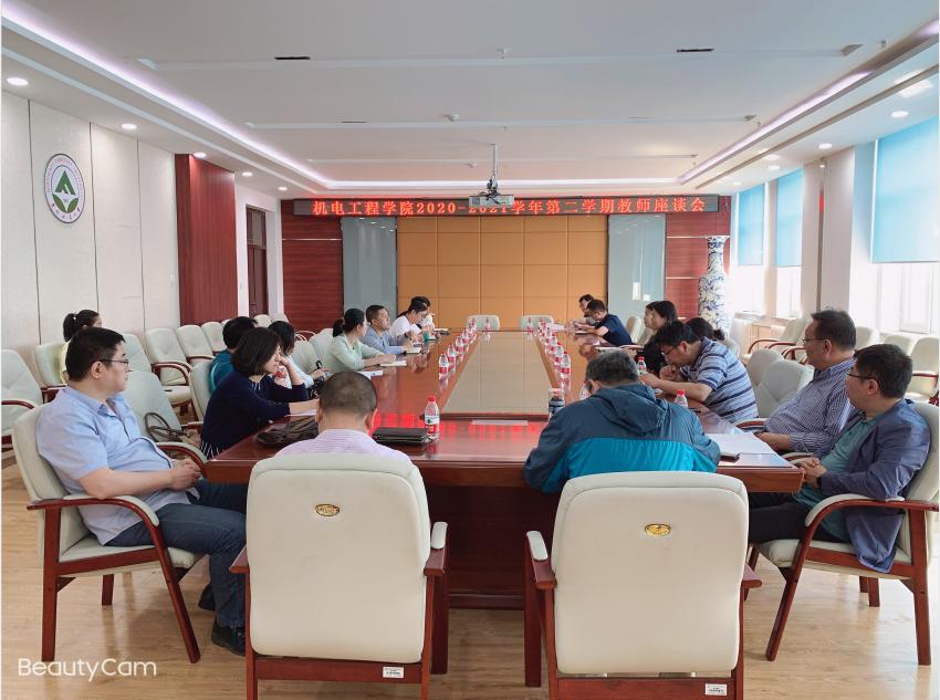 2021年5月26日下午2:00,新葡的京官网在成栋楼713会议室召开了2020-2021学年第二学期教师座谈会。教务处刘艺、马翔宇,学校教学督导尼姝丽出席座谈会。学院教学督导、各专业(教研室)负责人、实验室负责人、各层面教师代表参加会议。座谈会由学院党委书记王佳彤主持。