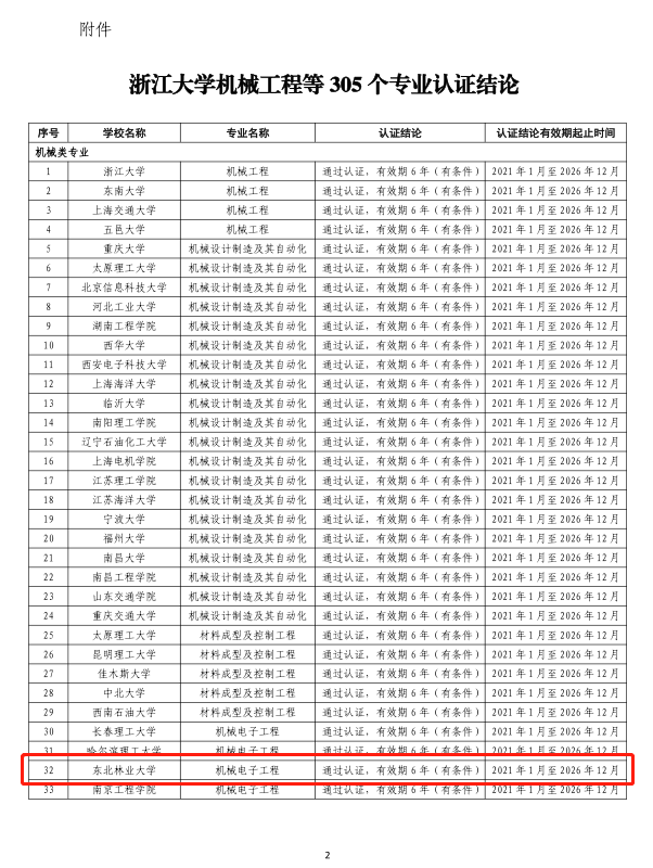 2021年6月10日,中国工程教育专业认证协会发布了《关于公布浙江大学机械工程等305个专业认证结论的通知》(工认协〔2021〕13 号),公布了2020年参加全国工程教育专业认证的认证结论。经过学校自评、专业类认证委员会审核、专家组现场考查、结论审议等程序,全国共有305个专业通过认证。新葡的京官网机械电子工程专业顺利通过认证,有效期均为6年(2021年1月至2026年12月)。截至目前,新葡的京官网自动化、机械设计制造及其自动化、电气工程及其自动化、机械电子工程4个本科专业通过工程教育专业认证,通过数量在全校17个学院中位列第一。