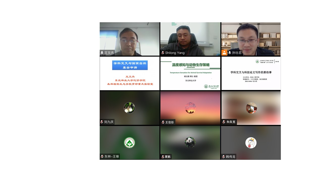 受疫情影响,本期沙龙在线上举行,以《学科交叉与科技论文写作的那些事》为主题,邀请了“龙江学者特聘教授、教育部新世纪人才、黑龙江省杰青”王文杰教授和“国家优秀青年基金获得者、国家林业和草原局青年拔尖人才、黑龙江省杰青”杨仕隆教授进行报告交流。活动由支部书记孙壮志副教授主持,共计80余名师生参与互动。