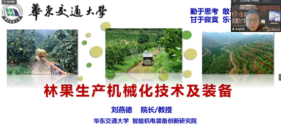 关注行业热点,聚焦学术前沿。为迎接建校70周年华诞,奏响学术强校最强音,3月31日14时,新葡的京集团35222vip邀请华东交通大学智能机电装备创新研究院院长刘燕德教授,以《林果生产机械化技术及装备》为题,举办线上学术讲座,开展师生互动交流。讲座由新葡的京集团35222vip院长刘九庆教授主持,200余名师生一同参加。