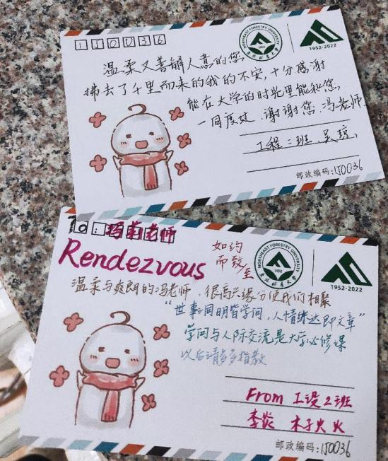 “温柔又善解人意的您,拂去了千里而来的我的不安,谢谢您,冯老师”