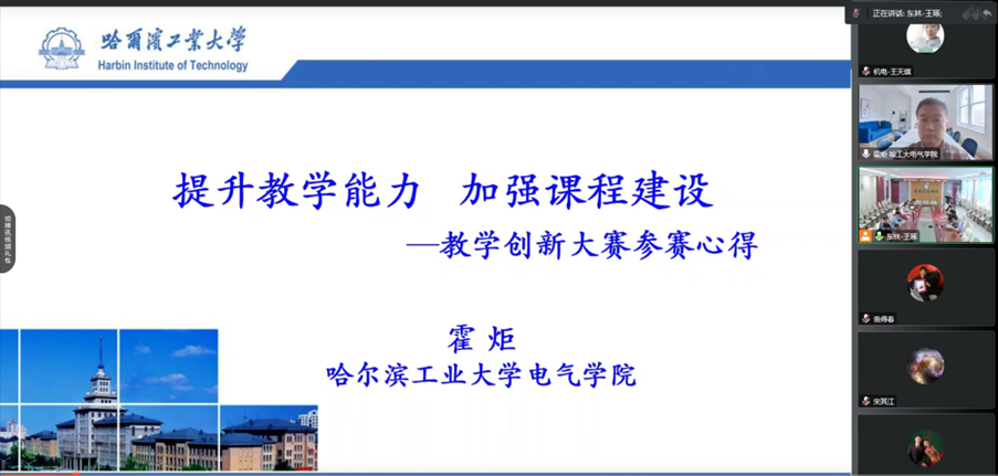 119日下午14:00,学院邀请哈尔滨工业大学电气工程及自动化学院长聘教授、博士生导师、黑龙江省教学名师霍炬,为学院全体教师开展教学能力培训。此次培训采用线上线下相结合的形式,院长刘九庆、副院长王琢以及部分青年教师在成栋楼713会议室线下学习,其他教师利用腾讯会议线上参训。培训由学院副院长王琢主持。