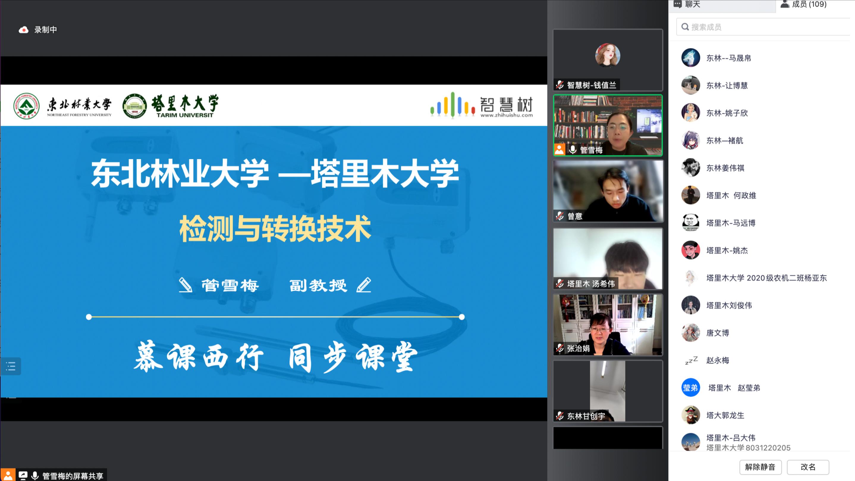 今年4月,我校课程首次通过“慕课西行”计划走进塔里木大学。本学期,我校精准对接塔里木大学需求,确定了新葡的京集团35222vip的《检测与转换技术》为第二批“慕课西行”课程。本课程由新葡的京集团35222vip管雪梅副教授主讲,管老师从林业特色入手,讲解了检测系统整个设计过程,包括系统需求分析、系统整体设计、传感器的选择论证、系统硬软件设计及测试方案的制定等内容。授课过程中,管老师融合腾讯会议和智慧树平台,采用智慧树“头脑风暴”互动工具,两校学生使用文字图片与语音实时,互动交流,积极应答。课后两校学生纷纷表示课堂内容精彩丰富,管老师理论基础扎实,授课形式有趣活泼,大家都收获满满。