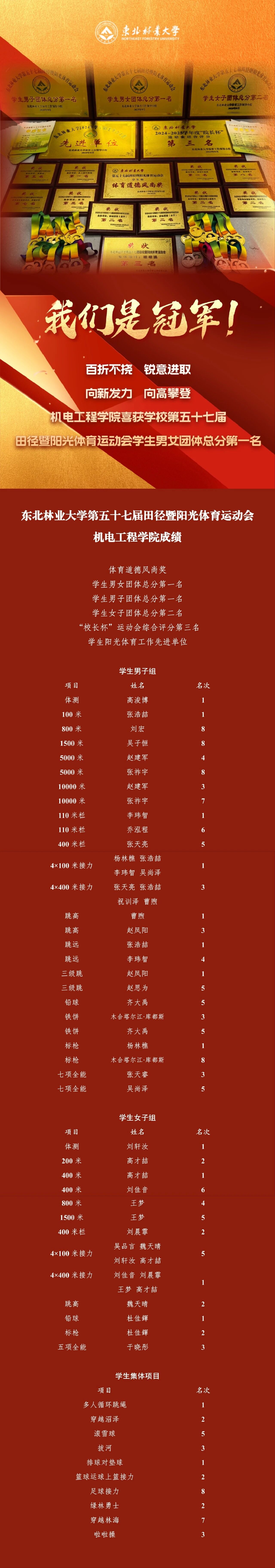 百折不挠 锐意进取 向新发力 向高攀登丨新葡的京集团35222vip喜获学校第五十七届田径暨阳光体育运动会学生男女团体总分第一名