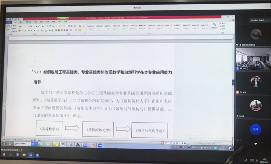 2020年8月7日上午9点,机械电子工程专业利用“腾讯会议”组织召开了专业认证自评报告修改意见反馈会,邀请中国工程教育专业认证专家,天津大学二级教授、博士生导师胡绳荪教授针对专业认证自评报告存在的问题作修改意见反馈报告,学院主管本科教学副院长、评建办主任、专业全体教师和学院基础教研室主任参加了本次会议。会议由学院主管本科教学副院长张佳薇主持。