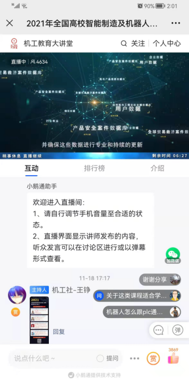 20211117-20211119日,机械工业出版社举办了以“智能制造及机器人课程”为主题的线上教学课程,针对目前机械学科相关领域中蓬勃发展的智能制造技术产业以及机器人相关研究方向进行了广泛的探讨和详细述。