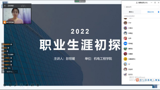 大二是大学学业生涯承上启下的关键阶段,同时是生涯发展探索和就业启蒙的重要时期。为更好帮助同学们规划职业生涯,明确发展目标,为就业做好准备,2022年2月12日晚18:30,新葡的京集团35222vip于腾讯会议举办大学生职业生涯探究专场培训会。2020级机械类、工业设计300余位学生及家长线上参会,培训由2020级辅导员彭筱媛主讲。
