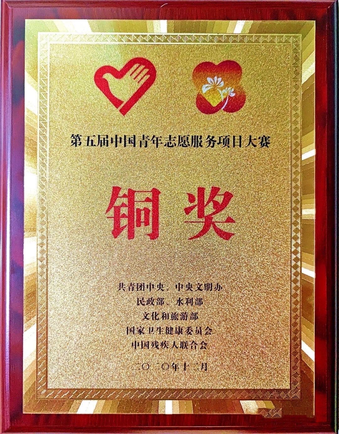 日前,由共青团中央、中央文明办、民政部、水利部、文化和旅游部、国家卫生健康委员会、中国残疾人联合会共同举办的第五届中国青年志愿服务项目大赛暨2020年志愿服务交流会在东莞落下帷幕。我校晨曦志愿者协会的“青春伴夕阳”志愿服务项目和绿色使者志愿者协会的“大学生绿色营”项目脱颖而出,获得国家级铜奖。