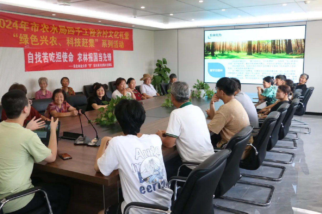 下午,团队在温岭市双峰村村委会围绕“绿色思想润心,建设美丽中国”主题进行了宣讲。宣讲会上,团队成员较为全面的向当地村民介绍了近年我国在绿色农业领域的行动与成果,同时也介绍了我校在助林兴林方面取得的成就。