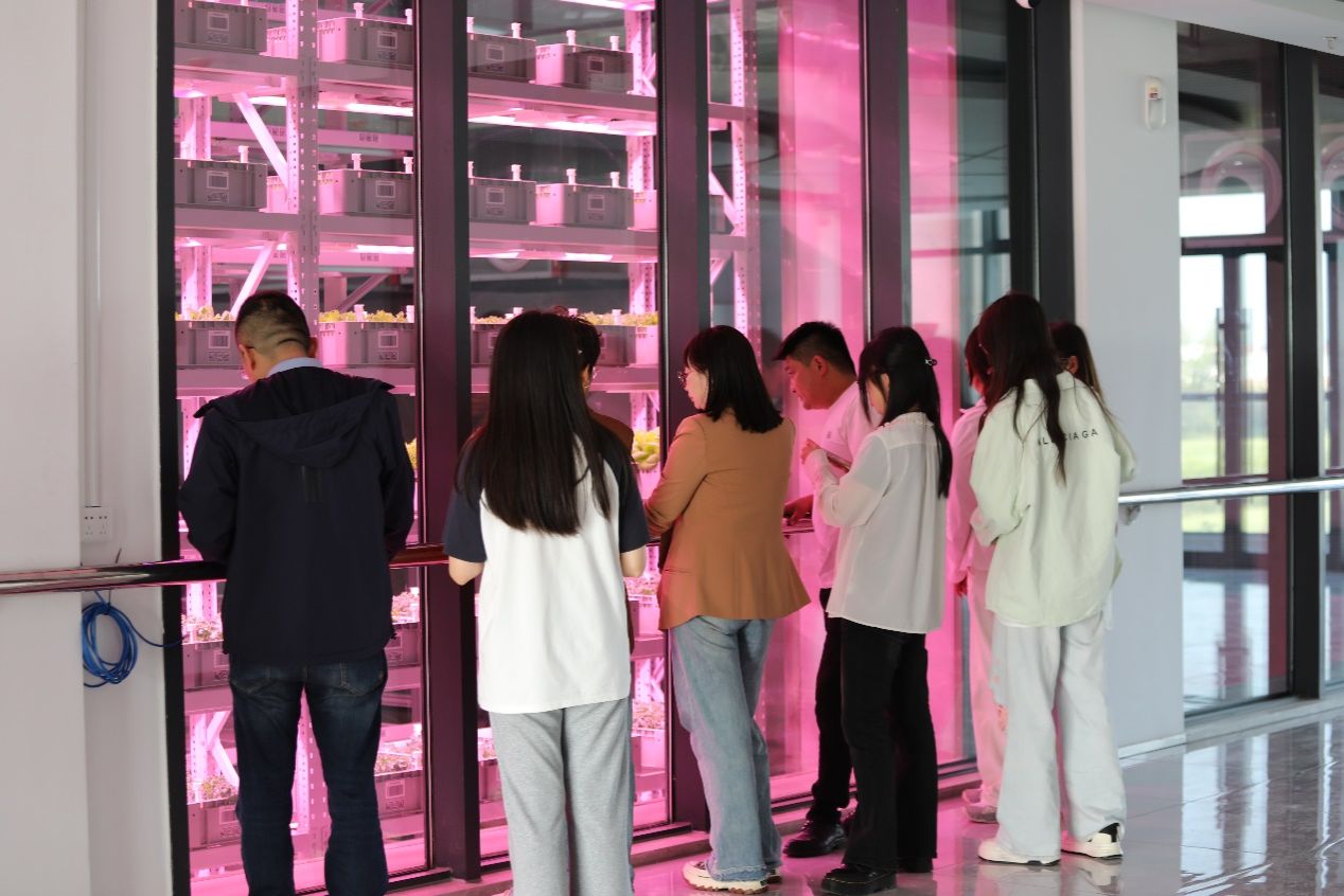 师生们实地考察胶州富士康植物工厂项目工业园区。作为智慧农业4.0示范项目,该企业通过无人自动化种植技术、微模块种植系统及精准营养技术,打造“从工厂到餐桌”一体化产业链。企业负责人的现场讲解,让学生们直观体会“创新、协调、绿色、开放、共享”新发展理念在乡村振兴中的生动实践,深刻认识中国式现代化的实践路径与现实意义。