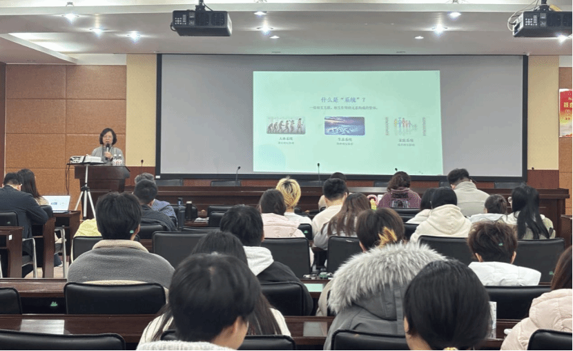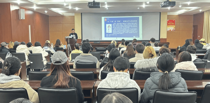 为深化应用心理学专业学生对家庭治疗理论与系统思维的理解,拓宽心理干预实践视野,Beat365官方网站应用心理学专业于11月19日在4218会议室举办“心理大讲堂”系列学术讲座之“从个体到系统:家庭治疗与系统思维”专题讲座。本讲座立足系统思维的核心原则,如循环因果、家庭稳态等,通过理论讲解与技术示例,帮助学生建立系统观,从而更全面、深刻地理解人类心理与行为未来的学习与实践开启一扇新的大门。应用心理学专业师生共100余人参与此次讲座。