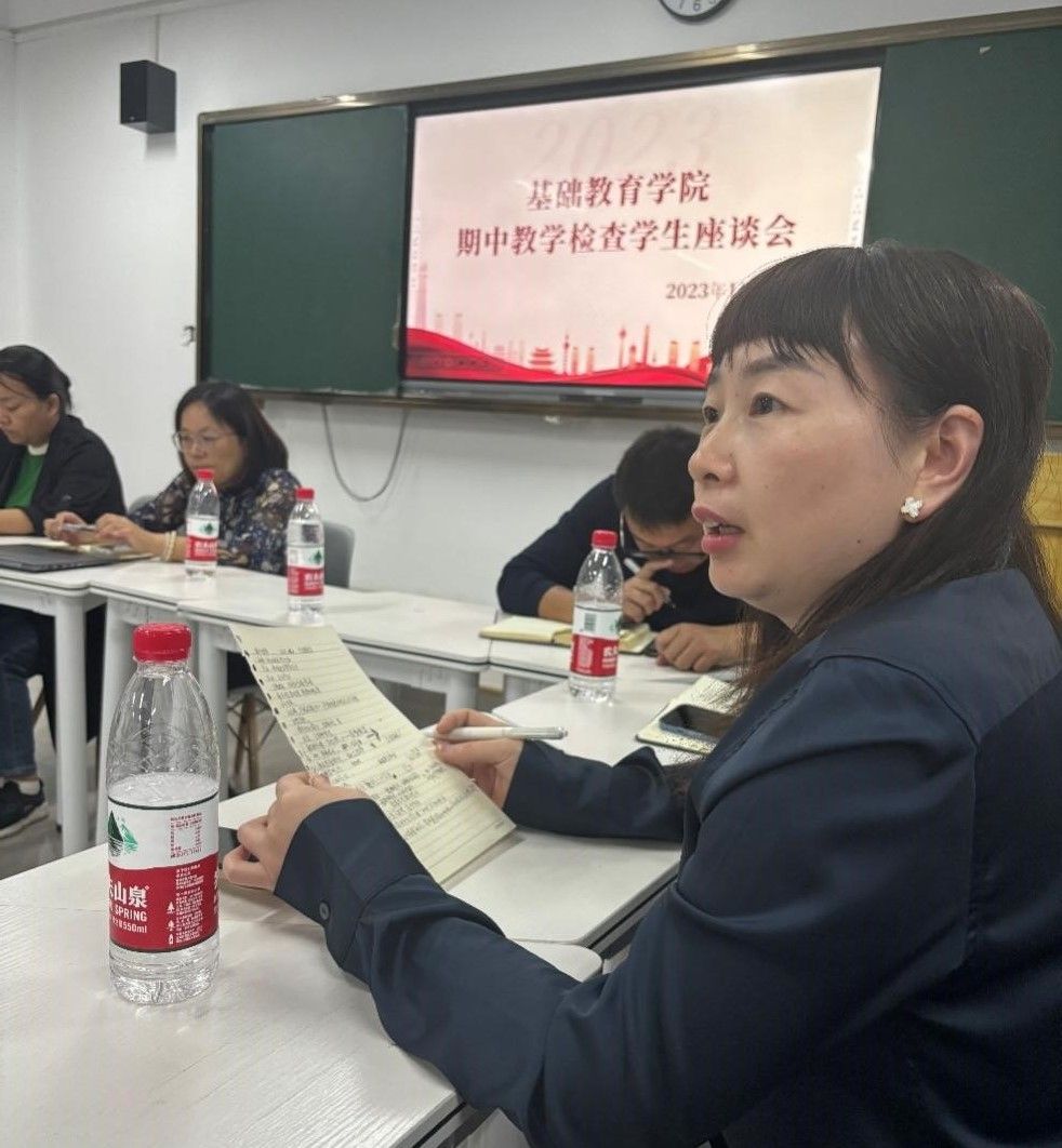 为进一步提高我院教学管理水平,改善学生学习生活环境,营造健康、快乐、高效的学习氛围,11月1日下午,基础教育学院举办期中检查学生座谈会,Beat365官方网站副院长刘晓燕及各位教研室主任参会。