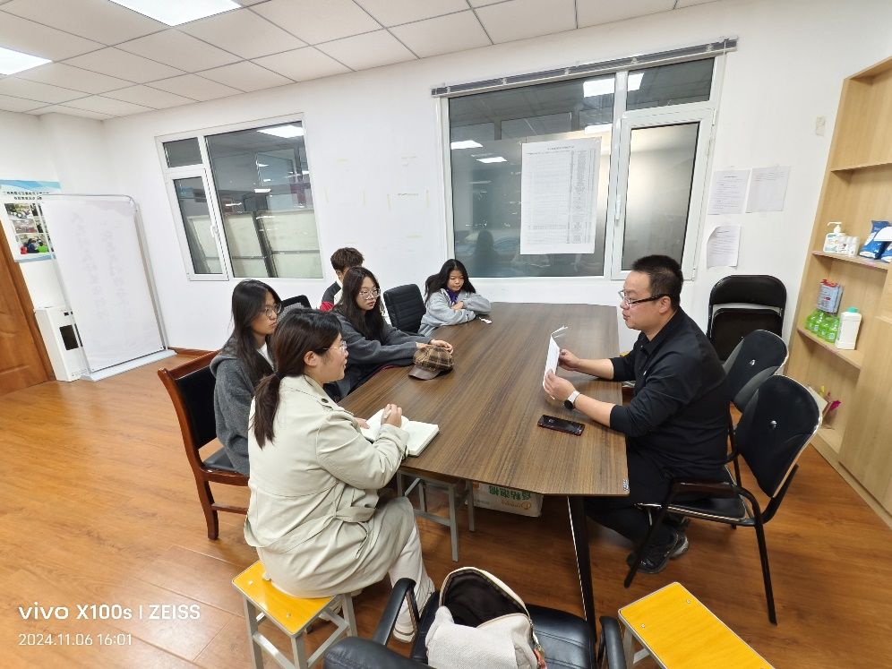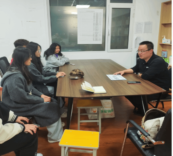 抵达社区后,学生们受到了社区工作人员范德武书记的热烈欢迎。范德武书记首先给学生们讲解了社区在服务民众方面所做的种种努力,如组建志愿服务队“一缕阳光”,以帮助社区困难群体,增强居民幸福感;不定期举办节气活动以活跃社区氛围,增进社区凝聚力;协助成立业主委员会以更好地服务社区居民,推进基层自治等。座谈会的最后,学生们还就社区发展问题与范书记进行了交流。本次活动让学生们受益匪浅,学生们不仅加深了对社区工作的认识与理解,还激发了投身于社会工作的热情与决心。