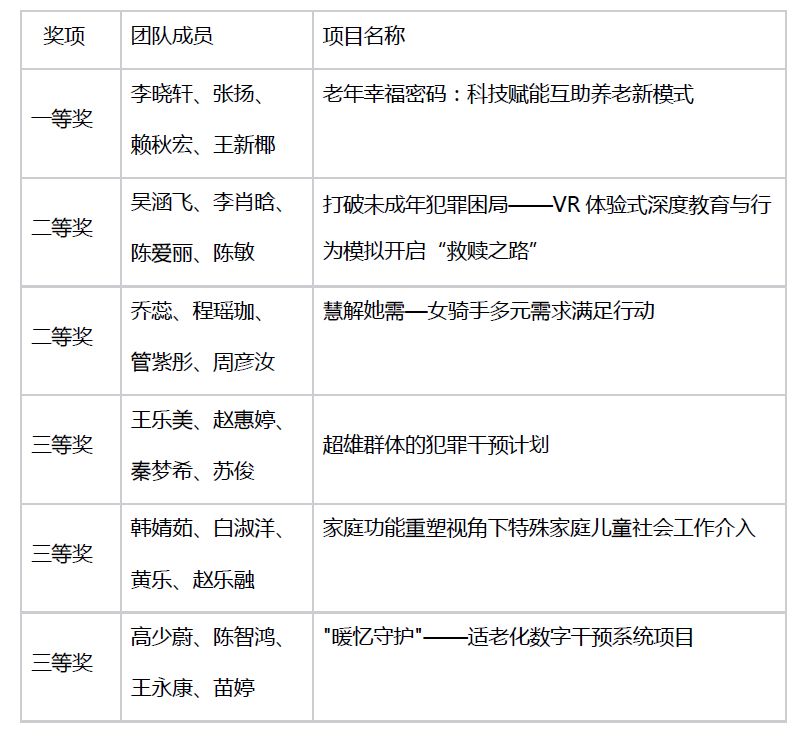 此次大赛,共征集到多个高质量的社工案例。在评审过程中,评审团队秉持学术专业精神,从主题契合度、案例设计的创新性、实践可行性以及潜在社会影响力等多个维度出发,运用专业的学术评价方法,对每个案例进行了深度剖析与量化评估。经过激烈的角逐与严谨的评审,最终在众多优秀作品中选6个获奖作品,奖项设置为一等奖1名、二等奖2名、三等奖3名。现将优秀案例获奖名单予以公示。
